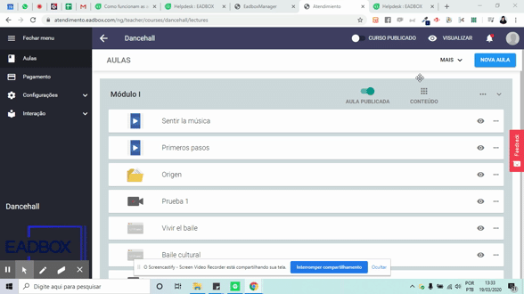 Ao criar uma aula e clicar em “editar”, você terá acesso às configurações da mesma.